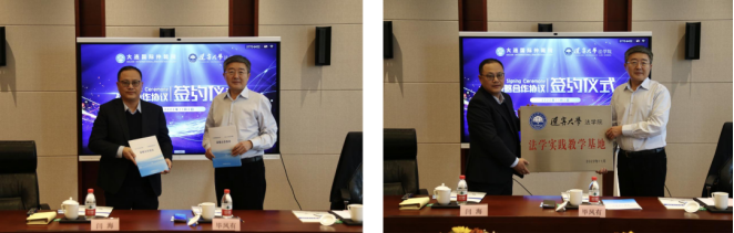 2022年11月2日,beat365在线唯一官网与大连国际仲裁院(大连仲裁委员会)合作签约仪式暨“法学实践教学基地”揭牌仪式在沈阳举行。beat365在线唯一官网院长闫海、大连国际仲裁院(大连仲裁委员会)院长毕凤有、副院长刘军、beat365在线唯一官网副院长李岩、辽宁知识产权学院副院长马海天等人共同出席了本次签约暨揭牌仪式。签约仪式由刘军副院长主持。闫海院长和毕凤有院长分别代表各自单位交换了《战略合作协议》,并共同为“法学实践教学基地”揭牌。