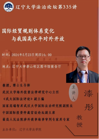 讲座主题: 国际经贸规则体系变化与我国高水平对外开放