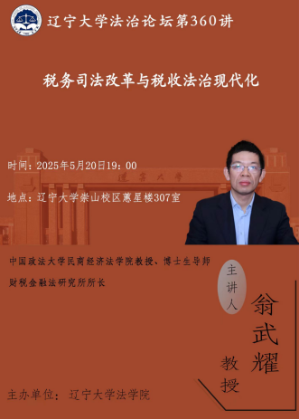 讲座预告|翁武耀:税务司法改革与税收法治现代化
